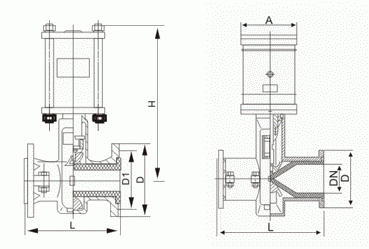 GJ6K41X常開(kāi)型氣動(dòng)管夾閥主要外形尺寸: