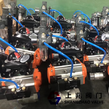 氣動(dòng)開關(guān)球閥還配有行程限位開關(guān)、電磁閥、減壓閥和0.4-0.7MPa氣源實(shí)現(xiàn)開關(guān)操作,并發(fā)出兩對(duì)無源觸點(diǎn)信號(hào)指示閥門的切換。