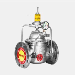 緊急切斷閥是水力控制閥中的一種。是由主閥、節(jié)流閥、導(dǎo)閥、壓力表以及接管等其他管件組成。當主閥進口壓力低于導(dǎo)閥設(shè)定的壓力時,導(dǎo)閥此時處于開通狀態(tài),主閥上蓋腔內(nèi)壓力與主閥出口壓力相等,進口與出口存在壓差,水流經(jīng)閥口由出口流出。當消防泵起動,或變頻泵壓力升高,超過導(dǎo)閥設(shè)定壓力時,由主閥進口通向?qū)чy控制管壓力升高,作用在彈簧上的壓力增大,向下壓緊,帶動閥芯下移,使導(dǎo)閥關(guān)閉,此時主閥進口壓力通過節(jié)流閥不斷補充到主閥閥蓋上腔,因閥瓣受到的向下的壓力大于向上的推力,主閥關(guān)閉。請大家注意的關(guān)鍵點是,進口壓力小于設(shè)定壓力該閥一直處于開啟狀態(tài),進口壓力大于設(shè)定壓力,該閥處于關(guān)閉狀態(tài)?,F(xiàn)在有很多設(shè)計人員誤以為只要裝了緊急關(guān)閉閥,它就會關(guān),不用講什么條件,那就錯了。