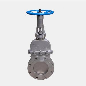 刀型閘閥的啟閉件是閘板,閘板的運動方向與流體方向相垂直,只能作全開和全關(guān),不能作調(diào)節(jié)和節(jié)流。刀型閘閥關(guān)閉時,密封面可以只依靠介質(zhì)壓力來密封,即依靠介質(zhì)壓力將閘板的密封面壓向另側(cè)的閥座來保證密封面的密封,這就是自密封。大部分刀型閘閥是采用強制密封的,即閥門關(guān)閉時,要依靠外力強行將閘板壓向閥座,以保證密封面的密封性。