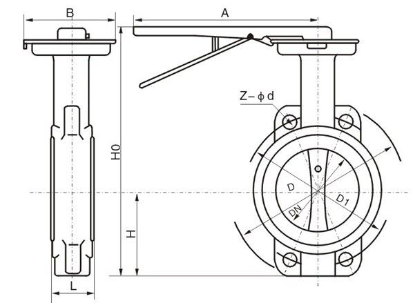 D71X 不銹鋼對夾式軟密封蝶閥主要外形連接尺寸: