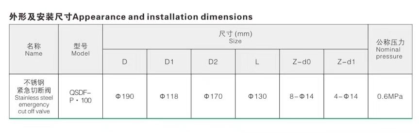 QSDF-P不銹鋼氣動海底閥--技術(shù)參數(shù)