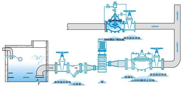 水力控制接管系統(tǒng)。利用水力自動操作,即可以作泄壓閥用又可作持壓閥用。作泄壓閥用時,可維持供水路壓力在設(shè)定的安全值之下;做持壓閥用,可維持主閥上游水壓在設(shè)定值之上,保持主閥上游供水壓力。
